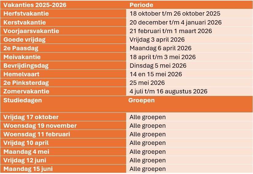 Schoolvakanties en studiedagen 2025-2026